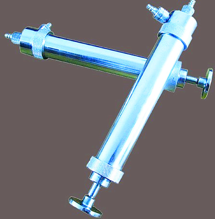將采樣器與孔板流量計(jì)的測壓嘴連接好,兩手握緊采樣器的筒體,一手緩緩?fù)饫瓧U,使氣體從采樣器的進(jìn)